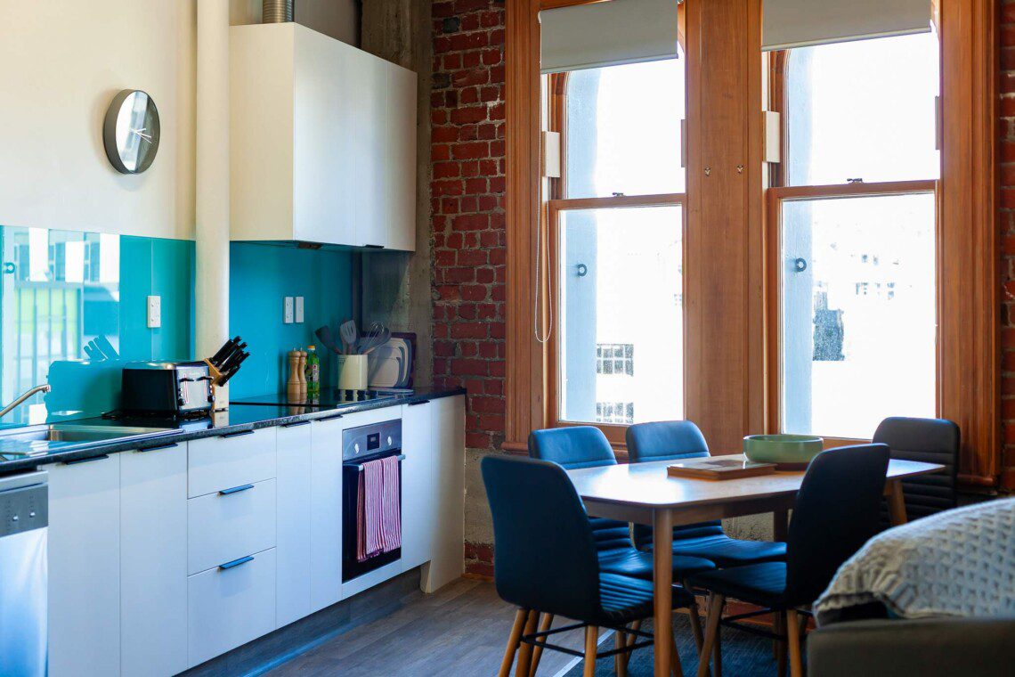 Guests will also enjoy convenient elevator access directly to the fourth floor. While there is no in-unit laundry, shared coin-operated laundry facilities are available within the building for guest use. With a blend of historic charm and modern convenience, this apartment provides a welcoming retreat right in the heart of Wellington’s CBD.