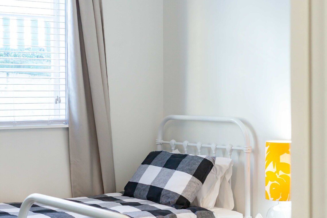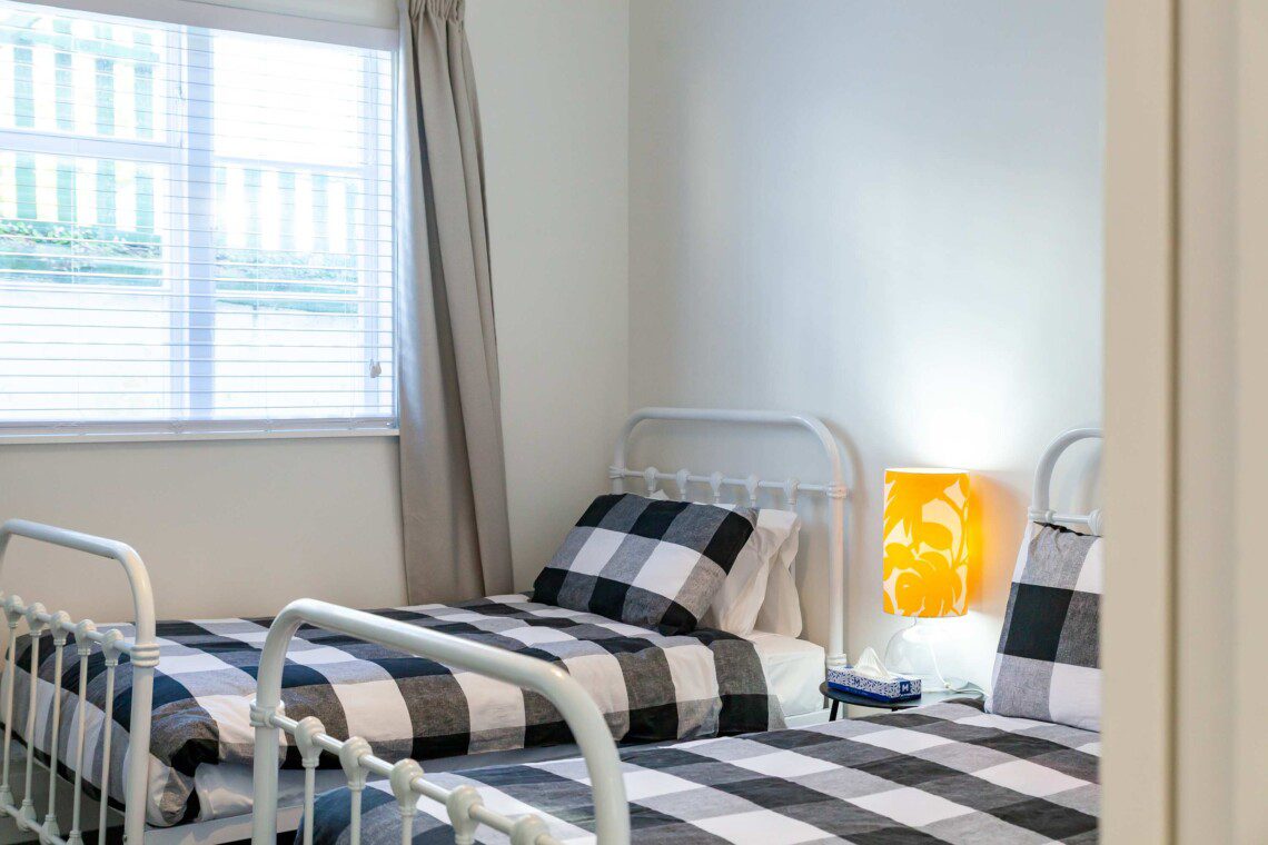 The home comfortably sleeps up to six guests across three spacious bedrooms. Two feature queen beds, while the third includes two single beds—ideal for kids or friends. Each room offers cozy touches to ensure a restful night’s sleep.